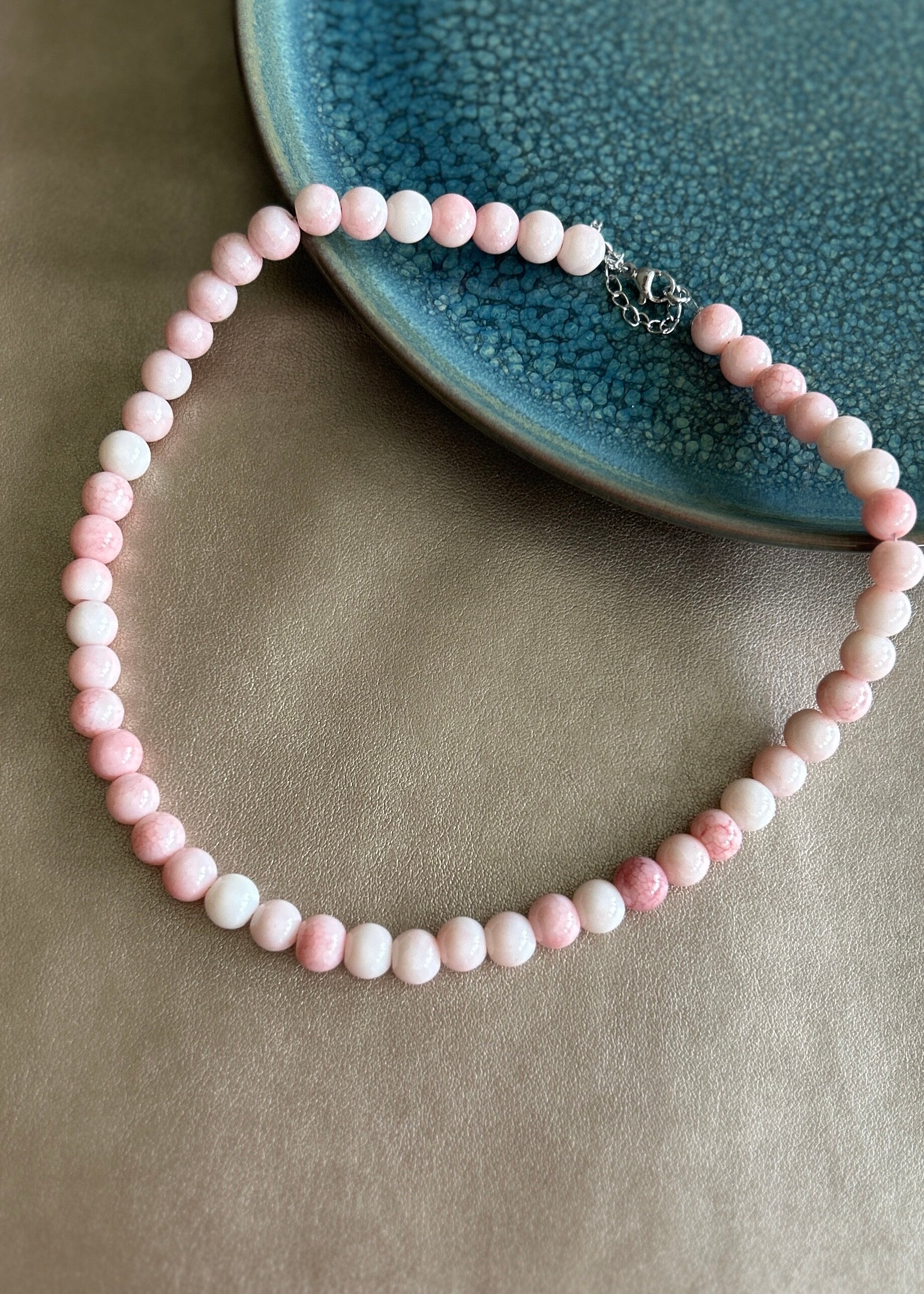 - De kralen zijn gemaakt van glas