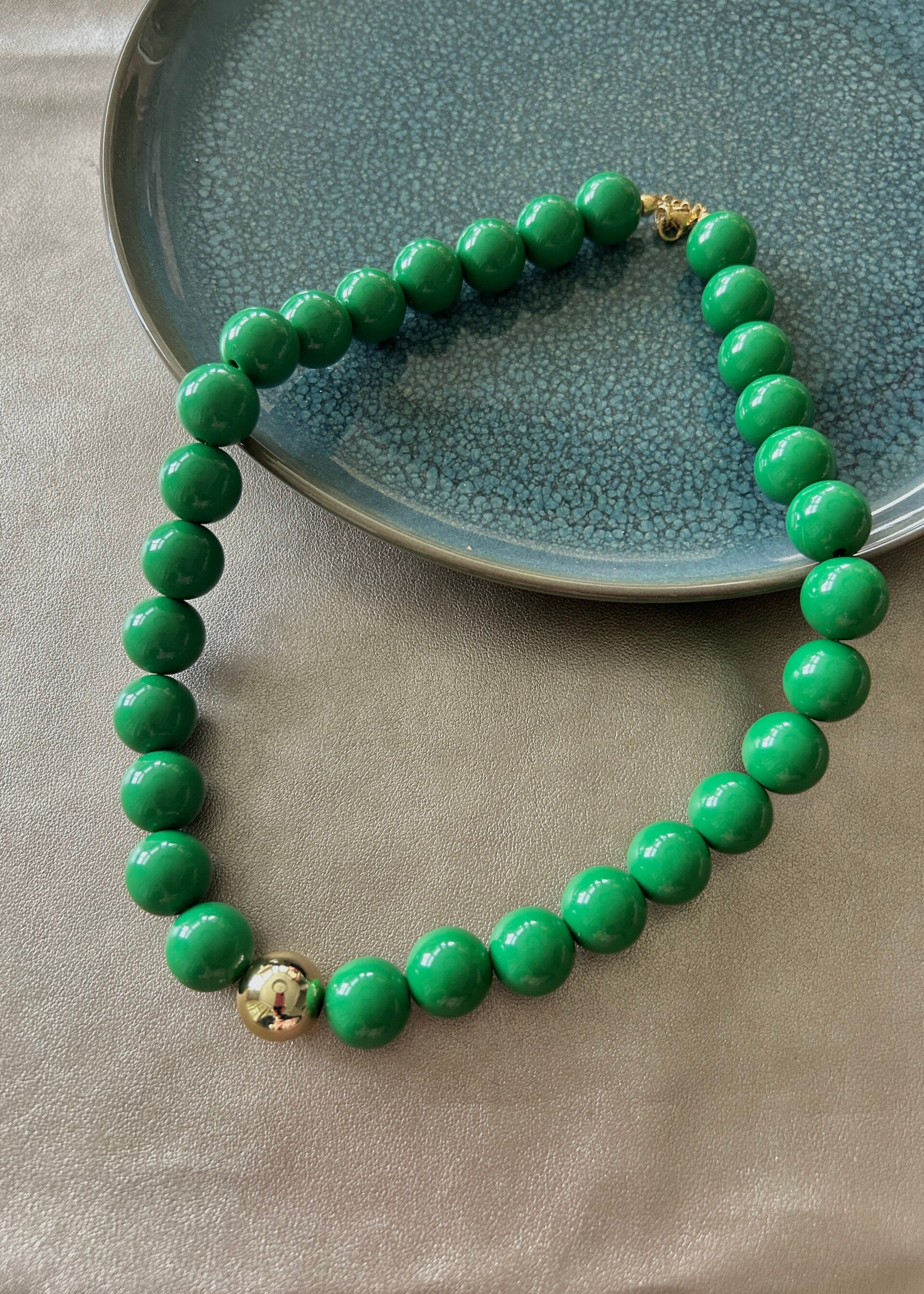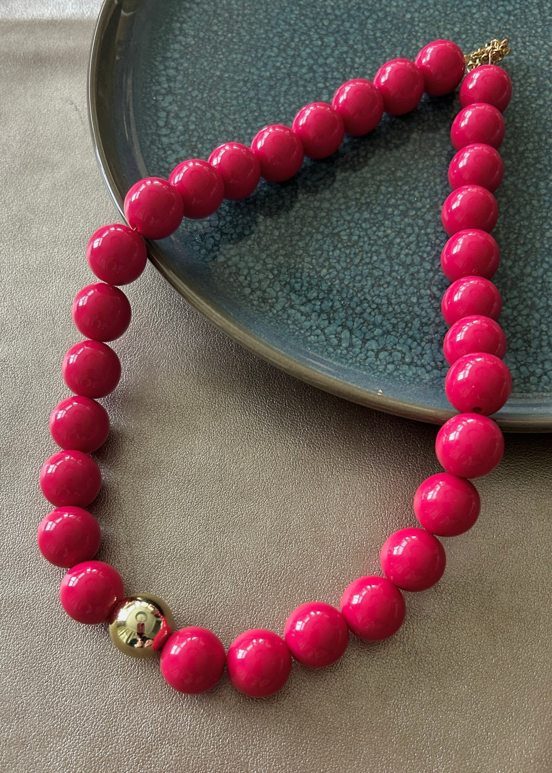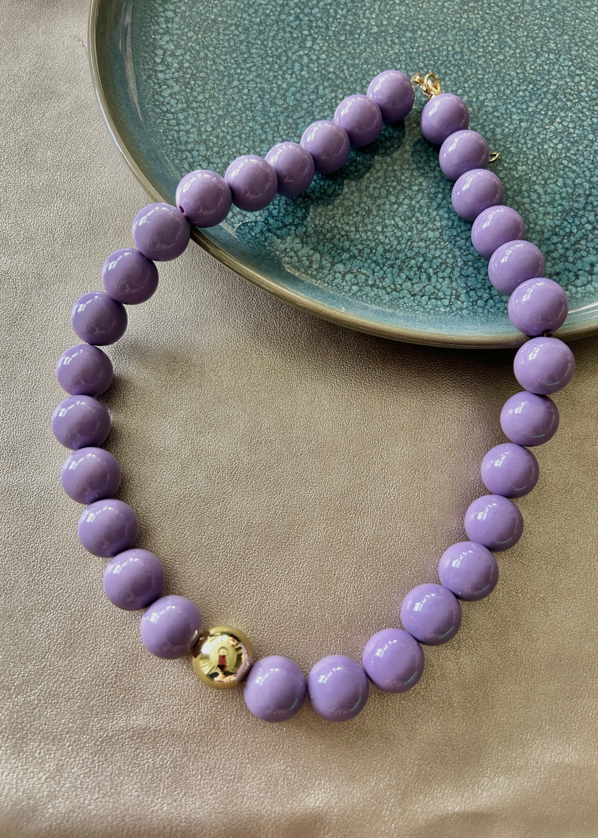 - De kralen zijn gemaakt van acryl (14mm) en miyuki.